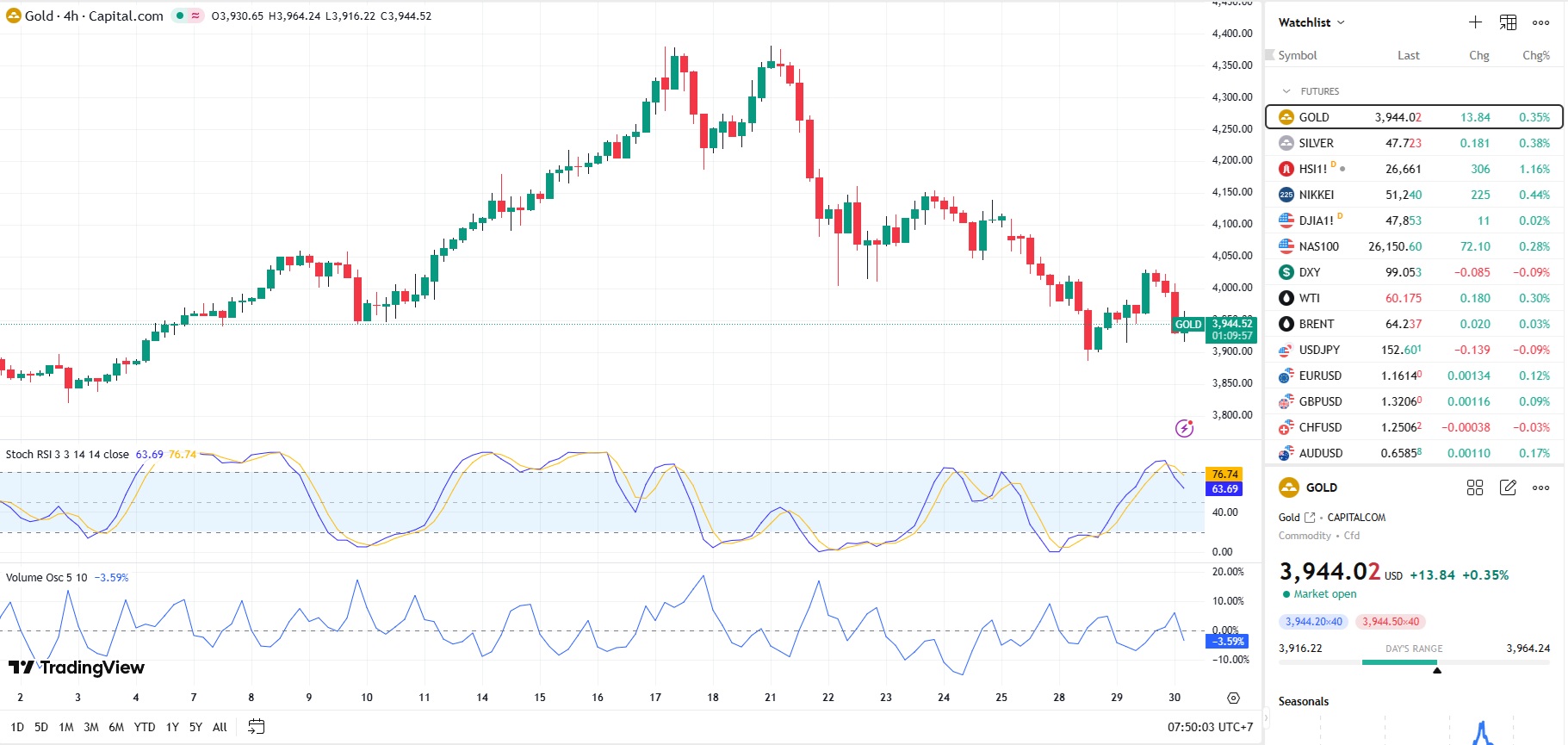 Pada saat analisis ini dirilis, Harga Emas berada pada level $3.944